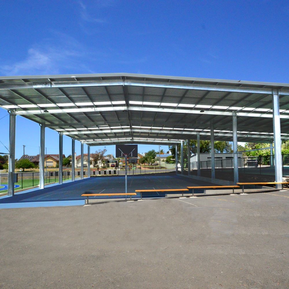 With a Central Recreational Covered Over Leaning Areas (COLA) the weather will never impede your timetable again. Covered over playing areas provide an all-weather recreational facility protecting children and adults from the elements. A tailored, value-engineered solid roof over your ball court or assembly area is a life-time investment for your school, which will enhance your students’ learning experience. Children who are happy at play are more relaxed and engaged learners.